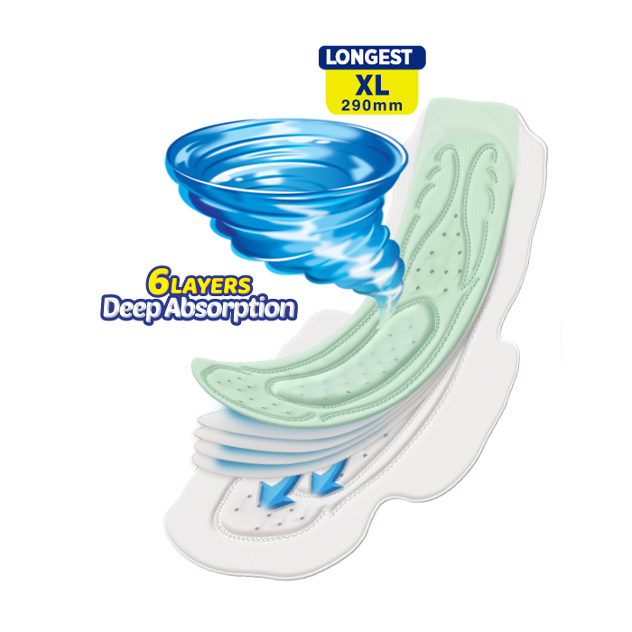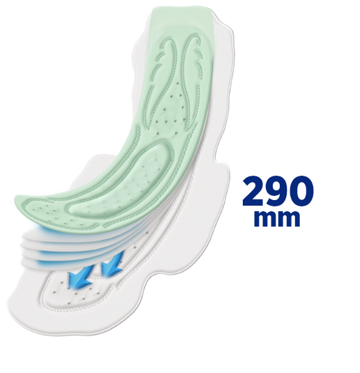 This napkin absorbs flow till the last layer preventing leakage on heavy flow days.