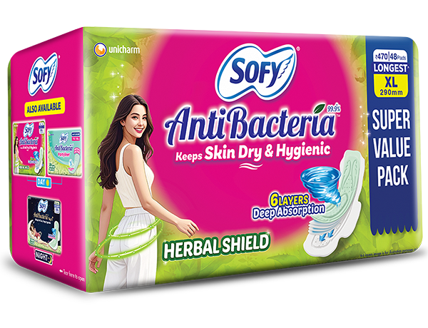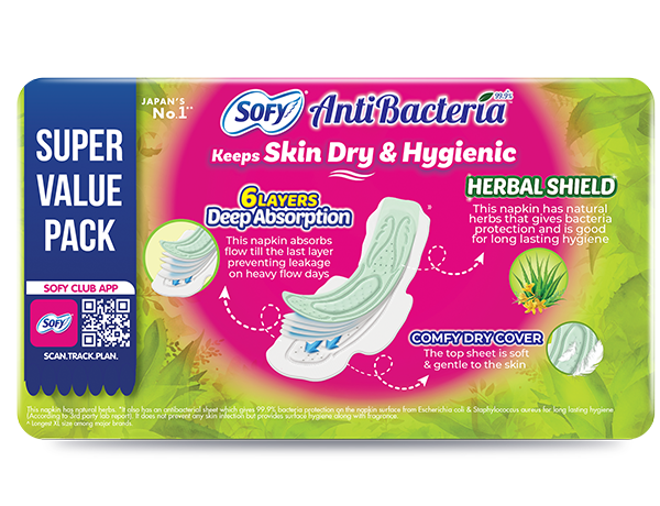 Stay hygienic and comfortable with Sofy’s Anti-Bacteria sanitary napkins, designed to keep you feeling safe & protected. Infused with a unique blend of natural herbs, these pads offer a herbal shield, ensuring safety during your period. Here’s what makes them exceptional:
