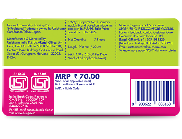This napkin absorbs flow till the last layer preventing leakage on heavy flow days.